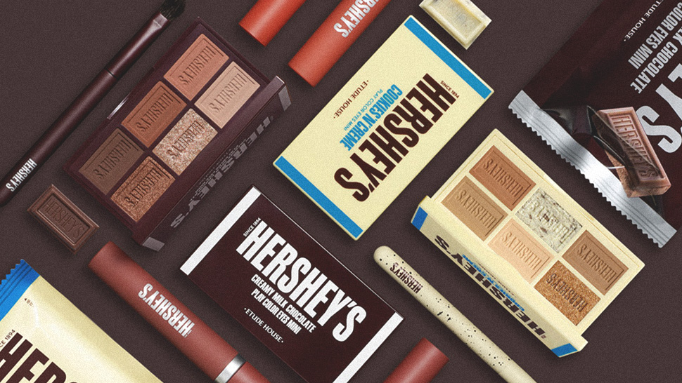 เมื่อแบรนด์เครื่องสำอางชื่อดังอย่าง Etude มาจับมือกับช็อกโกแลตอย่าง Hershey’s เพื่อแจกความหวานให้กับสาว ๆ โดยตีมหลักของคอลเลคชั่นนี้จะออกมาเป็น 2 แพ็คเกจจิ้ง โดยเลือกมาจากรสชาติที่ได้รับความนิยมสูงสุดของเฮอร์ชี่ส์คือรส Original Creamy Milk Chocolate และ Cookies’n’Creme ด้วยแพ็คเกจจิ้งที่ทำออกมาได้เหมือนกล่องช็อกโกแลตมาก ๆ จนบางทีก็ไม่ทันนึกว่านี่คือเครื่องสำอางนะคะ ทั้งกล่องที่พกมาด้วยเซ็ตเครื่องสำอางทั้งอายแชโดว์และทิ้นท์ โดยอายแชโดว์นั้นบอเลยว่าพิกเมนต์เนื้อสีจัดมาแบบแน่น ๆ พาเลททั้ง 6 สี สวยมาก สามารถทาได้เป็น Everyday Look ได้สบาย ๆ ส่วนทิ้นท์นั้น เป็นลิปสติกเนื้อด้านที่หลอมรวมเป็นเนื้อแมทท์บางเบาไม่หนักปาก มีให้เลือก 2 เฉดสีตามช็อกโกแลตเขาเลยค่ะ เป็นเซ็ตที่คุ้มค่าที่จะซื้อจริง ๆ