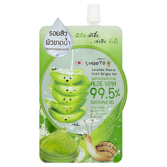 อีกหนึ่งตัวจาก Smooto เรียกว่าเป็นเจลในตำนานก็ว่าได้ ตัวนี้เป็นเจลว่านหางจระเข้ เข้มข้น 99.5 % ผสมวิตามินอีและสารสกัดเมือกหอยทากจากธรรมชาติ ตัวเนื้อเจลอ่อนนุ่มบางเบาซึมซาบเร็ซดีมาก ๆ เหมาะสำหรับทุกสภาพผิว โดยเฉพาะผิวบอบบางแพ้ง่ายยิ่งใช้ยิ่งดี เพราะให้ความชุ่มชื่นกับผิวหน้าได้อย่างดีมาก ๆ ยิ่งวันไหนที่ผิวหน้าของคุณอ่อนล้าจากมลภาวะด้านนอก ลองนำเจลตัวนี้ไปแช่ตู้เย็น แล้วนำมาทาหน้าของคุณ จะช่วยรีเฟรชผิวหน้าของสาว ๆ ให้สดชื่นและมีชีวิตชีวามากขึ้นด้วย